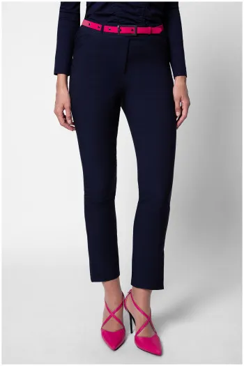 Pantalone su modni komad koji dame žele da poseduju u svim krojevima. Modeli ravnih nogavica, zvonarice, „cigarette“ kroj kao i idealne pantalone za posao nalaze se u našoj ponudi koja broji preko 90 unikatnih pari pantalona koje dizajniramo u veličinama od 36 do 50.