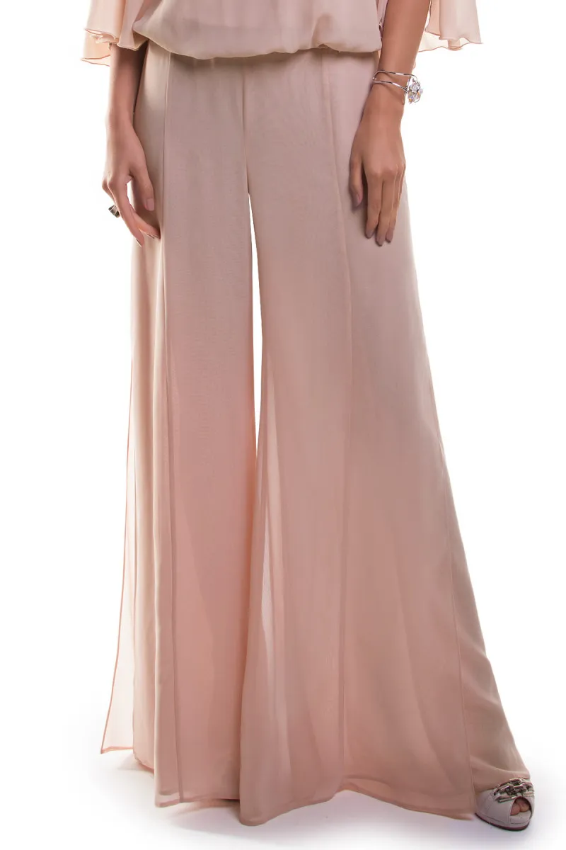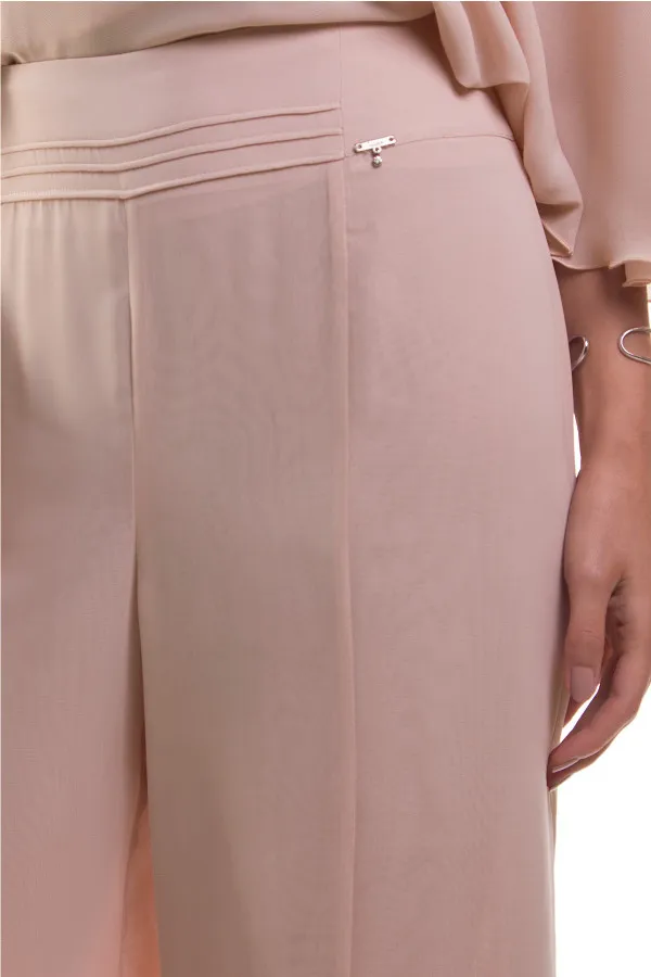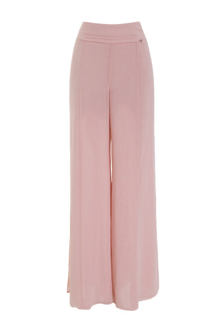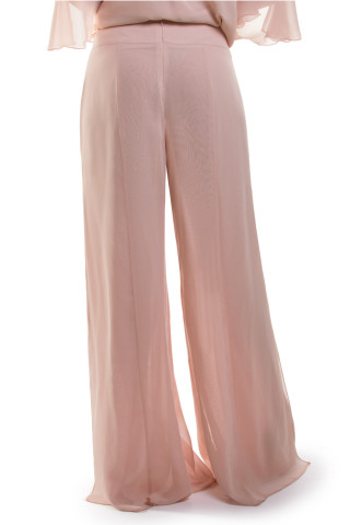 Široke dvoslojne pantalone pružiće Vam poseban osećaj sofisticiranosti. Dubok pojas i lagani materijal koji pada duž nogu doprineće da izgledate posebno šik. U kompletu sa tunikom ili bluzom iz iste kolekcije vaš outfit biće itekako primećen.