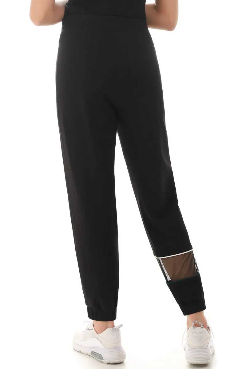 Opuštene i stajliš, ove trenerke su jedan od najudobnijih modela koje ćete nositi. Viskozni materijal od kog su napravljene u sebi sadrži visoki procenat elastina i čini sam materijal veoma rastegljivim, što pogoduje njihovoj dodatnoj udobnosti. Ležeran kroj prati liniju tela i ostavlja dovoljno prostora da se u njima nesmetano krećete ili obavljate sportske aktivnosti. Posebnu čar ovom modelu daje atraktivni umetnuti deo od tila. Ovaj model na lak način prilagodićete kako sportskim tako i casual outfitima.