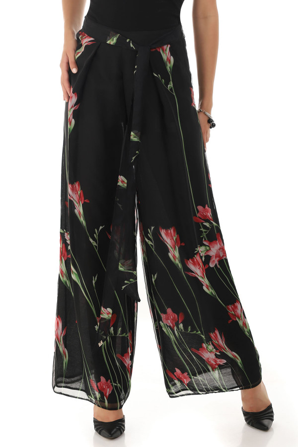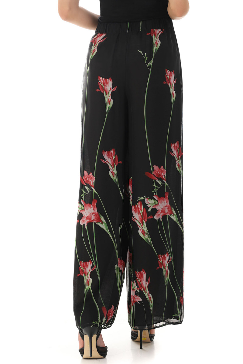 Pantalone cvetnog dezena sa dugim širokim nogavicama i rastegljivim pojasom. Kroj omogućava lakoću kretanja i udobnost. Pristaju svakoj građi tela. U kombinaciji sa odgovarajućom bluzom iz LUNA asortimana dovešćete izgled do savršenstva. Pravi su izbor za tople dane.
