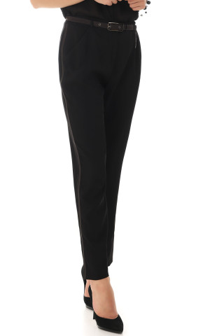 Jednostavne crne pantalone sa kaišem. Napravljene u potpunosti od prirodnog materijala, ove pantalone ravnog kroja mogu biti Vaš odabir za svaki dan ali i za različite svečane prilike. Možete ih kombinovati sa nekom bluzom i sakoom iz nove kolekcije kako biste kreirali savšeni outfit. Kaiš po potrebi možete skinuti.