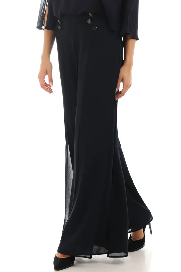Ženstveni plavi donji deo trenerke sa učkurom, džepovima i dekorativnim faltama nude ud...
