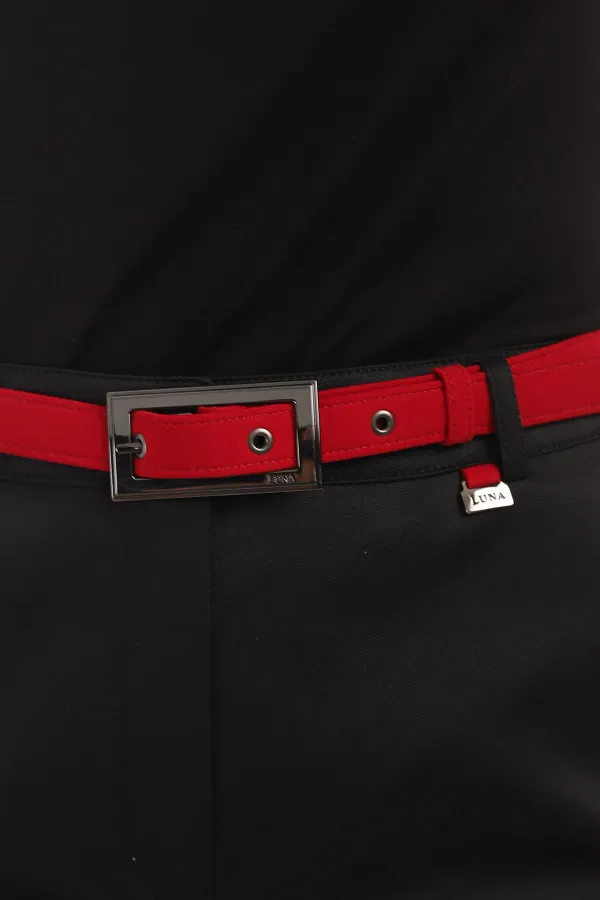 Elegantne crvene pantalone visokog struka odlično se kombinuju sa sakoom iz prateće Lun...