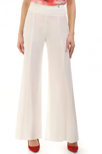 Elegantne bež pantalone sa visokim strukom, prefinjenim krojem i modernim rasporom na n...