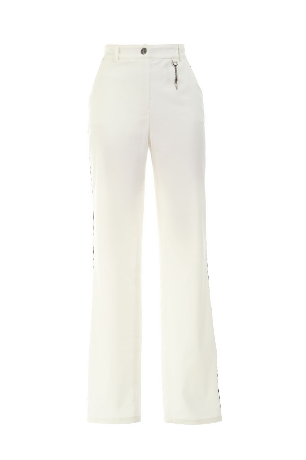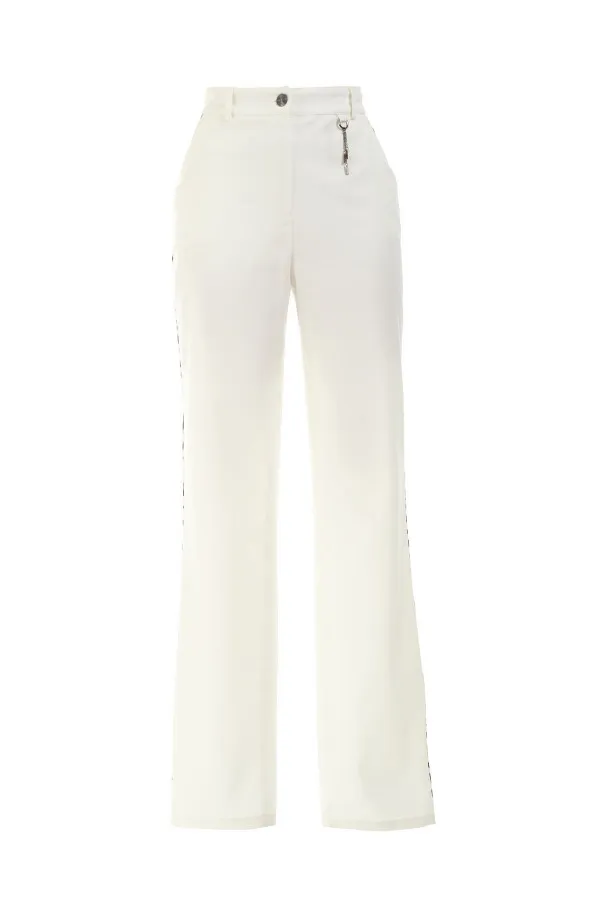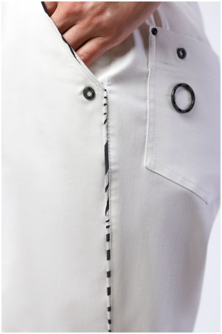 Bele pamučne pantalone ravnog kroja. Paspul je prošaran zebra printom. Kako biste postigli savršen ležerni outfit iskombinujte ih sa Luna majicom iz iste linije.