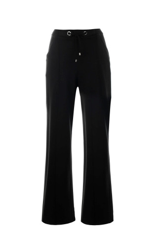 Donji deo trenerke u crnoj boji ravnog je kroja i savršeno pristaje svim tipovima građe. Model ima bočne džepove i imitaciju pojasa na vezivanje.