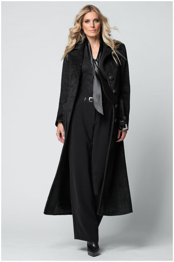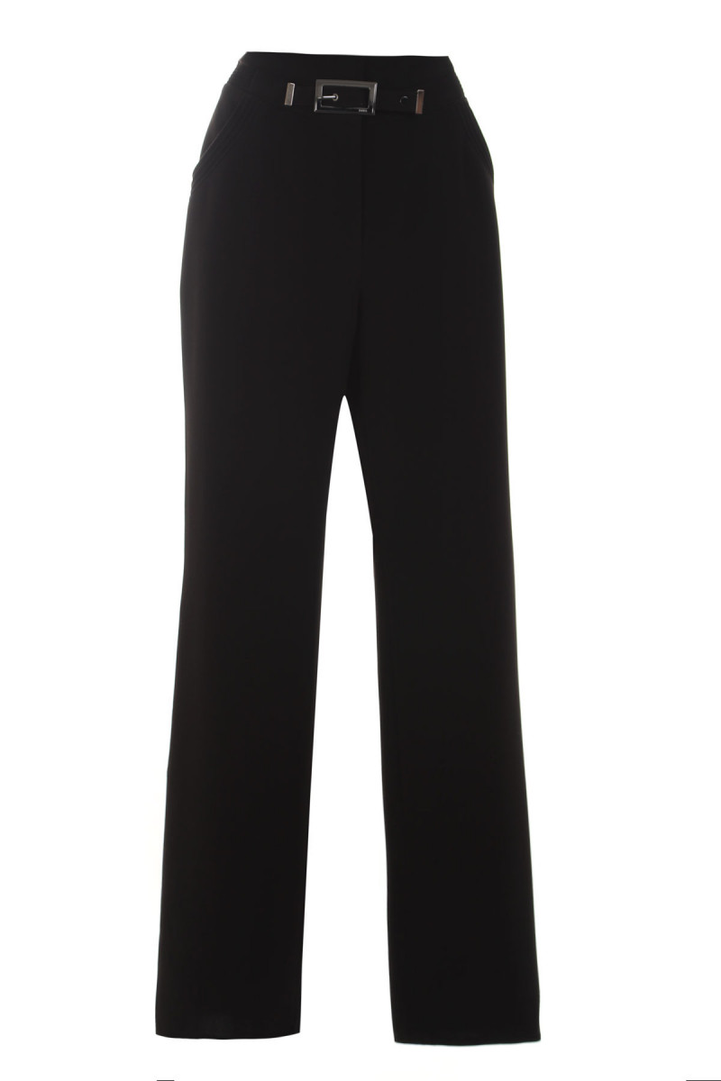 Crne pantalone dubljeg su kroja sa elastičnim pojasem odlično se prilagođavaju Vašem struku.