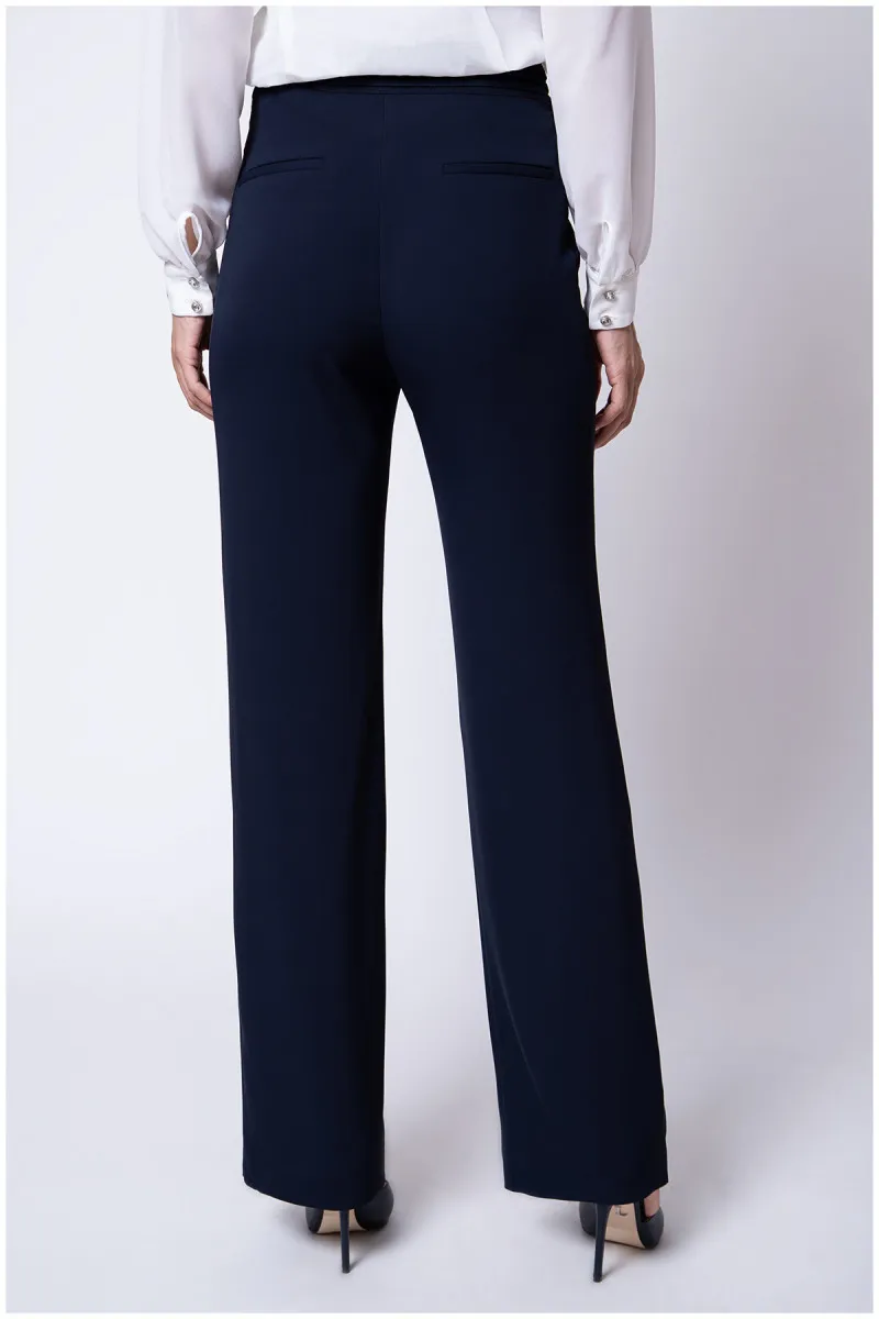 Elegantne jednobojne pantalone ravnog kroja. Kopčanje sa prednje strane rajsferšlusom, unutrašnjim dugmetom i metalnom kopčicom. Model se savršeno kombinuje sa modelima iz Luna asortimana.