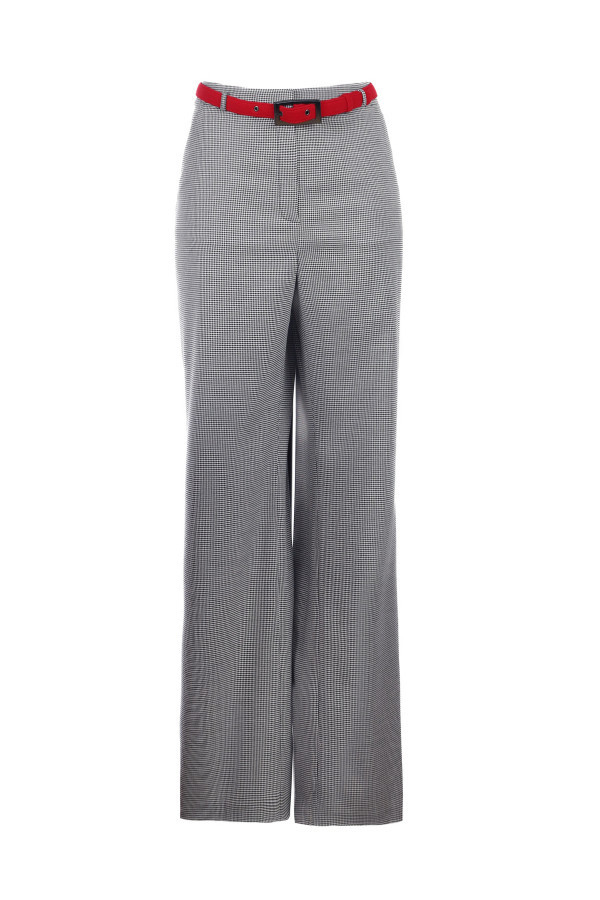 Elegantne pantalone ravnog kroja sa pepito dezenom. Model poseduje crveni kaiš, koji po potrebi možete skinuti. Za postizanje savršenog outfita, predlažemo Vam da ih ukombinujete sa komplementarnim sakoom iz iste kolekcije.