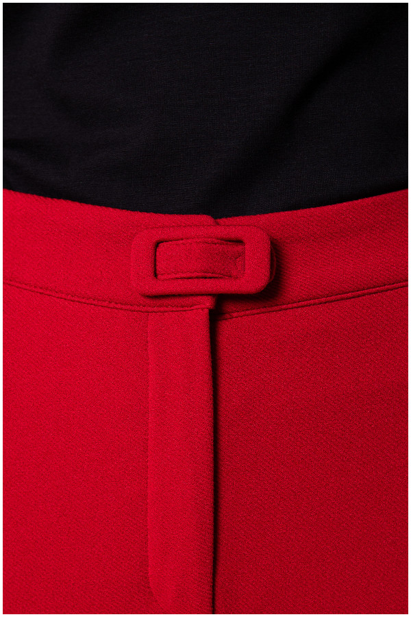 Elegantne pantalone uskog kroja sa bočnim džepovima. Pojas je ukrašen imitacijom kaiša. Dodatni komfor tokom nošenja obezbeđuje visok procenat elastina. Odlično se kombinuju sa komplementarnim sakoom iz iste linije.