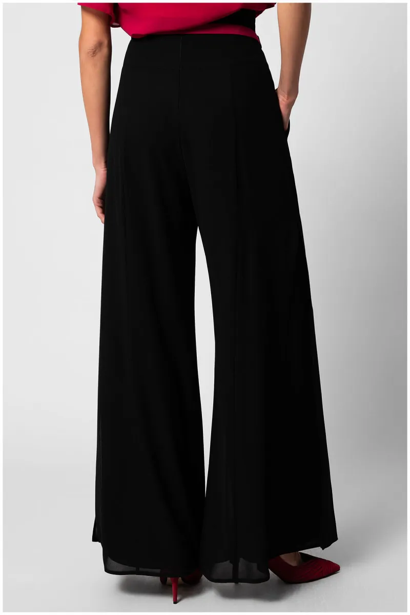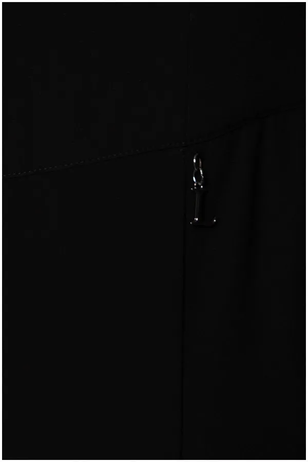 Crne elegantne pantalone ravnog kroja sa bočnim prorezima, laganim padom i glatkom, pri...