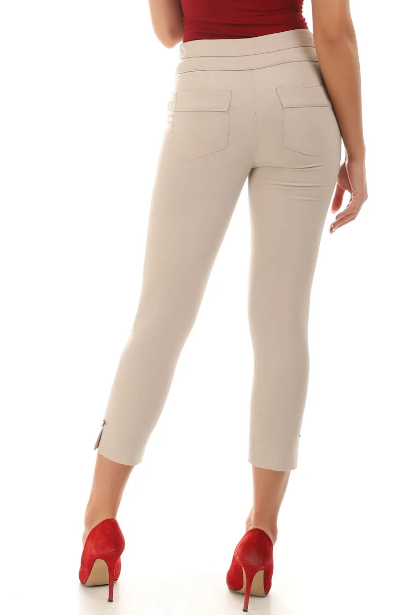 Elegantne pantalone ravnih nogavica od štofa sa elastinom. Zona struka akcentovana je ukrasnim driker dugmadima. U kombinaciji sa visokim potpeticama izdužuje siluetu. Lako se kombinuje sa tunikama, košuljama i bluzama. Za poslovne prilike preporučujemo i odgovarajući sako iz naše ponude.
