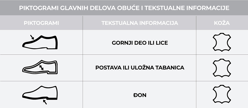 Piktogrami glavnih delova obuće
