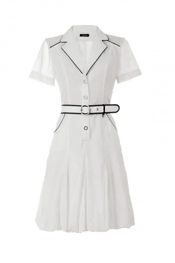 Kratka bela haljina koja u kombinaciji sa ešarpom i torbom iz iste linije kreira savrše...