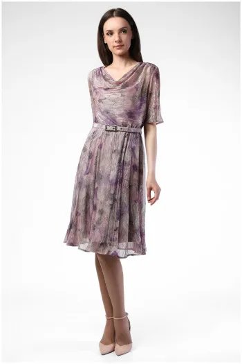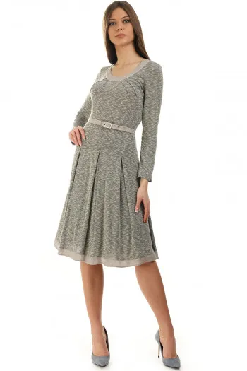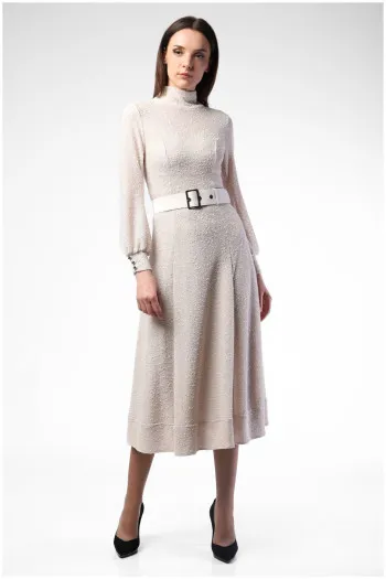 Midi haljina efektnog dezena u nežnoj bež nijansi.