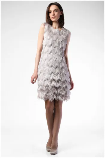 Kratka bež haljina "A kroja" atraktivnog dizajna, pogodna je kako za poslovne tako i sv...