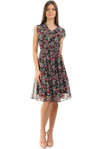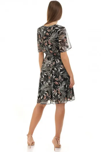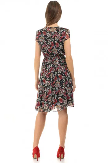 Uska haljina floralnog dezena sa V izrezom i dugim transparentnim rukavima.
