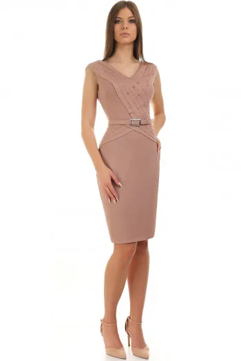 Efektna uska haljina u bež boji savršeno prati liniju tela i ističe Vašu figuru.