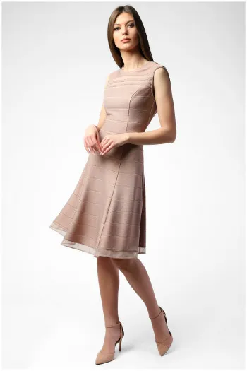 Elegantna haljina "A kroja" u nežnoj bež nijansi.