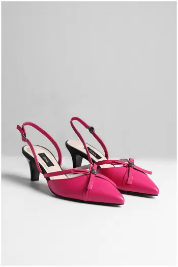 Elegantna, usko krojena haljina u ciklama nijansi sa V-izrezom, odvojivim lepršavim ruk...