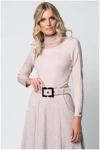 Elegantna rolka u bež boji sa prozirnim detaljima i mekom, elastičnom teksturom, idealn...