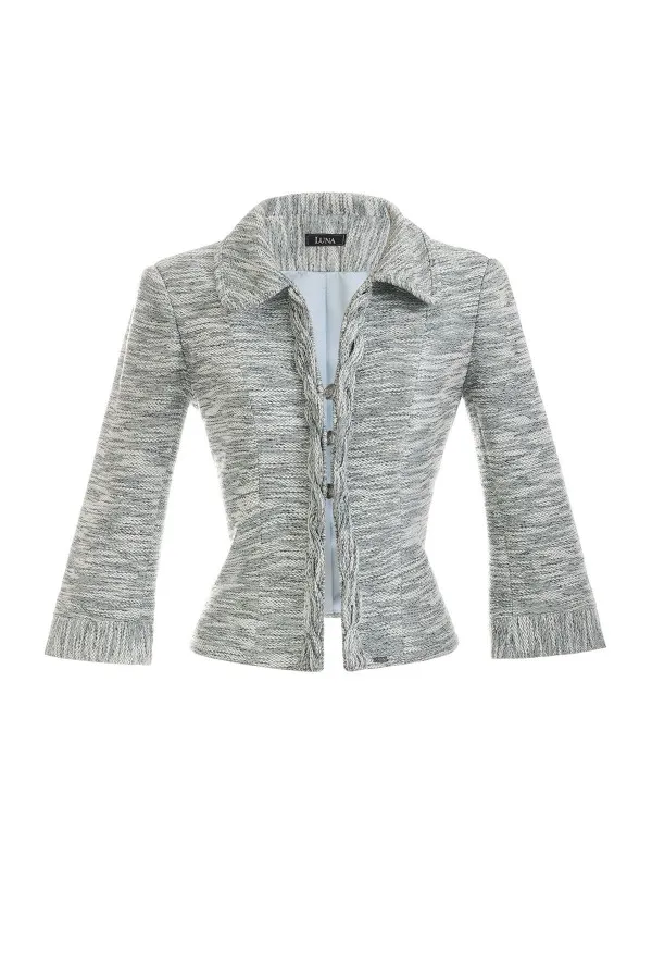 Sako od pamučne trikotažne pletenine sa ukrasnom pletenicom na prednjem delu. Njegova udobnost ogleda se kako u samom mekanom materijalu tako i u ležernijem kroju. Lako se uklapa uz mnoge stilove i dezene.