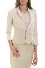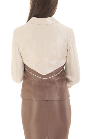 Elegantni sako od viskoznog platna visokog sjaja. Krojni delovi od kojih je napravljen formiraju savršen oblik koji vizuelno sužava struk a Vaš outfit čini savršeno stilizovanim. U kompletu sa suknjom od istog materijala Vaš outfit biće savršeno stilski usklađen.