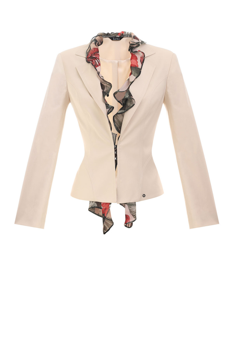 Kratki strukirani sako u nežnoj bež nijansi koji unosi prefinjenu otmenost u svaki outf...