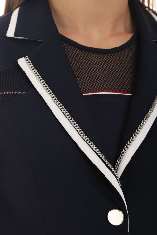 Za dame koje se ni u letnjim danima ne odriču sakoa kreirali smo elegantan model sa prozračnim rukavima. Rupičasti deo se nastavlja i na leđnom delu tako da ga možete bezbrižno nositi tokom celog leta. Odlično se kombinuje sa haljinama iz nove kolekcije.