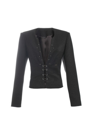 Strukirani kraći sako sa metaliziranim vlaknima koja čine ovaj model dodatno glamuroznim. Linija dekoltea i kopčanja oplemenjena je autentičnim cirkonima. Elastin u materijalu pruža osećaj udobnosti i tokom višesatnog nošenja. Možete ga kombinovati sa haljinama iz iste linije i dobiti savršeni outfit, kako za svečanu tako i za poslovnu priliku.