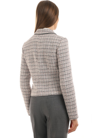 Kratki strukirani sako u nežnoj bež nijansi koji unosi prefinjenu otmenost u svaki outf...