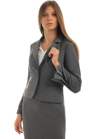 Elegantni kratki sako jednostavnog kroja. Možete ga kombinovati sa suknjom ili pantalonama iz iste linije i dobiti savršen poslovni look. Karneri po obodu rukava čine ovaj model efektnim. Zahvaljujući elastinu u materijalu veoma je prijatan za višesatno nošenje.