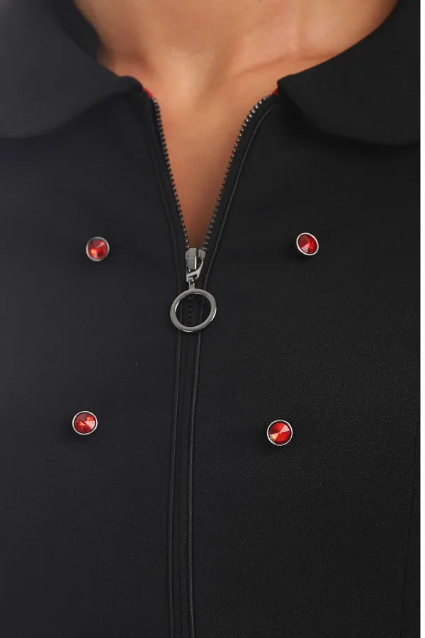 Elegantni crno-beli sako za svečane prilike, sa kontrastnim ivicama i dekorativnim kopč...