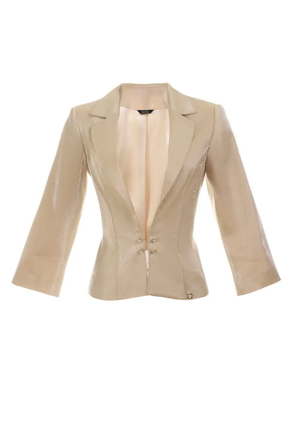 Kratki strukirani sako u nežnoj bež nijansi koji unosi prefinjenu otmenost u svaki outf...