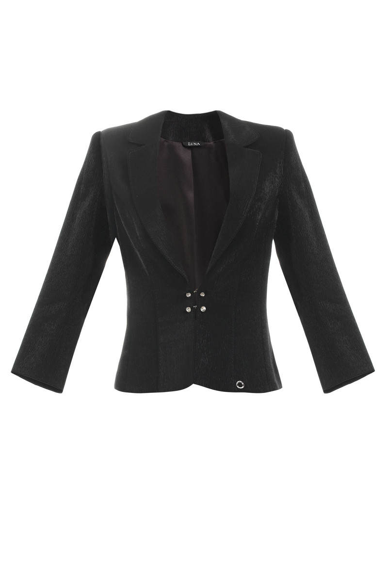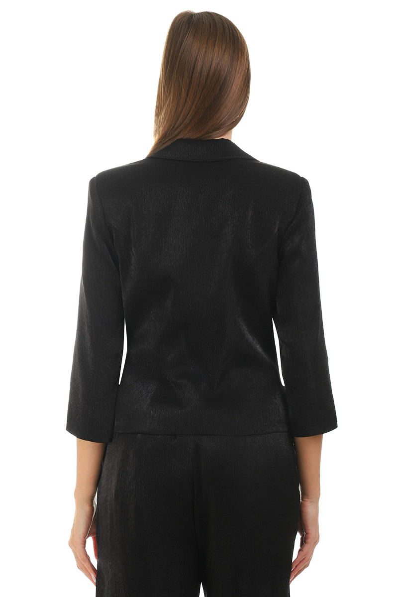 Elegantni strukirani sako u crnoj boji sa dugim rukavima.