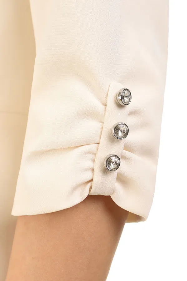 Elegantan sako u nežnoj bež nijansi idealan je za kombinovanje sa pantalonama iz iste linije.