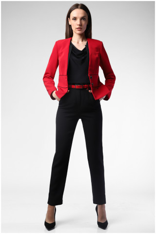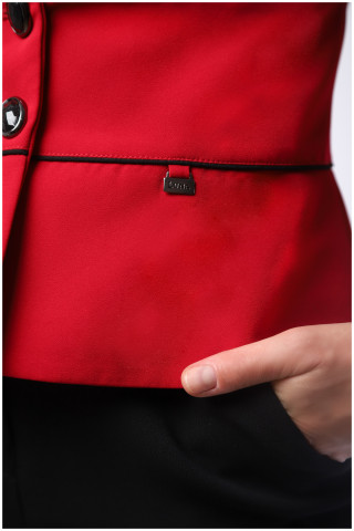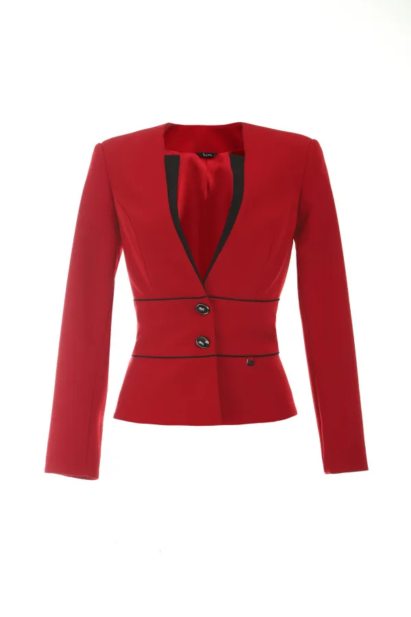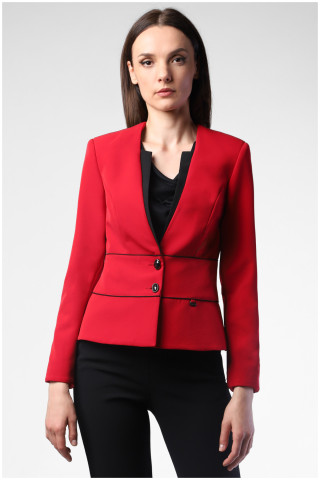 Elegantni strukirani sako u crvenoj boji sa dugim rukavima.