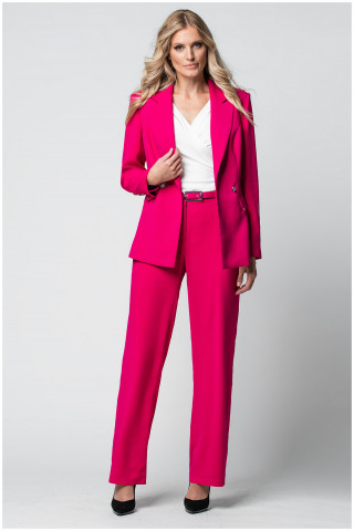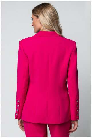Sako strukiranog kroja u pink nijansi zakopčava se po sredini. Model poseduje džepove po prednjoj strani. Iskombinujte ga sa pantalonama istog dezena i postignite efektan outfit.