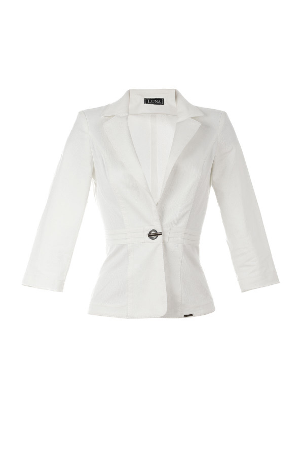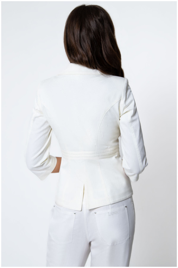 Beli strukirani sako sa 3/4 rukavima, idealan je za kombinovanje sa raznim LUNA pantalonama i suknjama ali i haljinama.