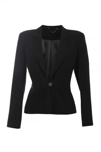 Strukirani sako dugih rukava u crnoj boji koji će Vašem izgledu dati posebnu notu otmen...