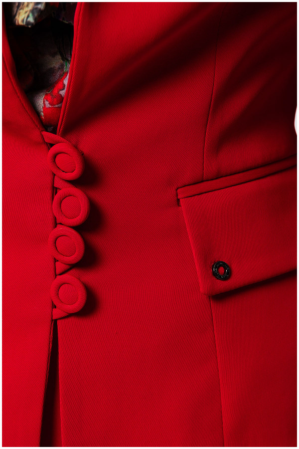 Elegantni sako 3/4 rukava u crvenoj boji. Model je strukiran, naglašavajući figuru i poseduje džepove na preklop. Prisustvo viskoze u svom sastavu čine ga veoma prijatnim i udobnim za nošenje. Odlično se kombinuje sa ostalim modelima iz Luna kolekcije.