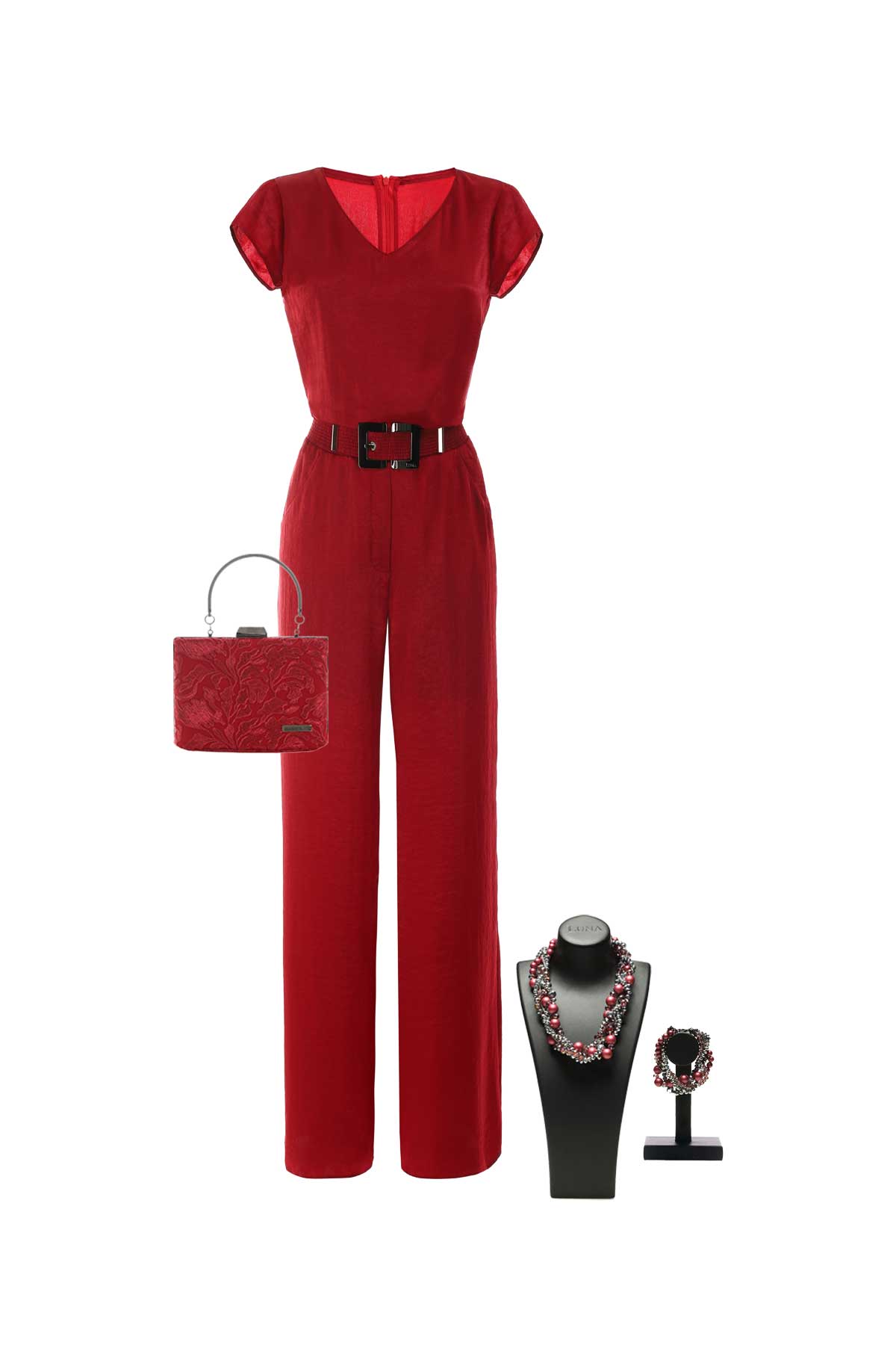 Ženstveni kombinezon u intenzivno crvenoj nijansi sa podesivim kaišem koji dodatno nagl...