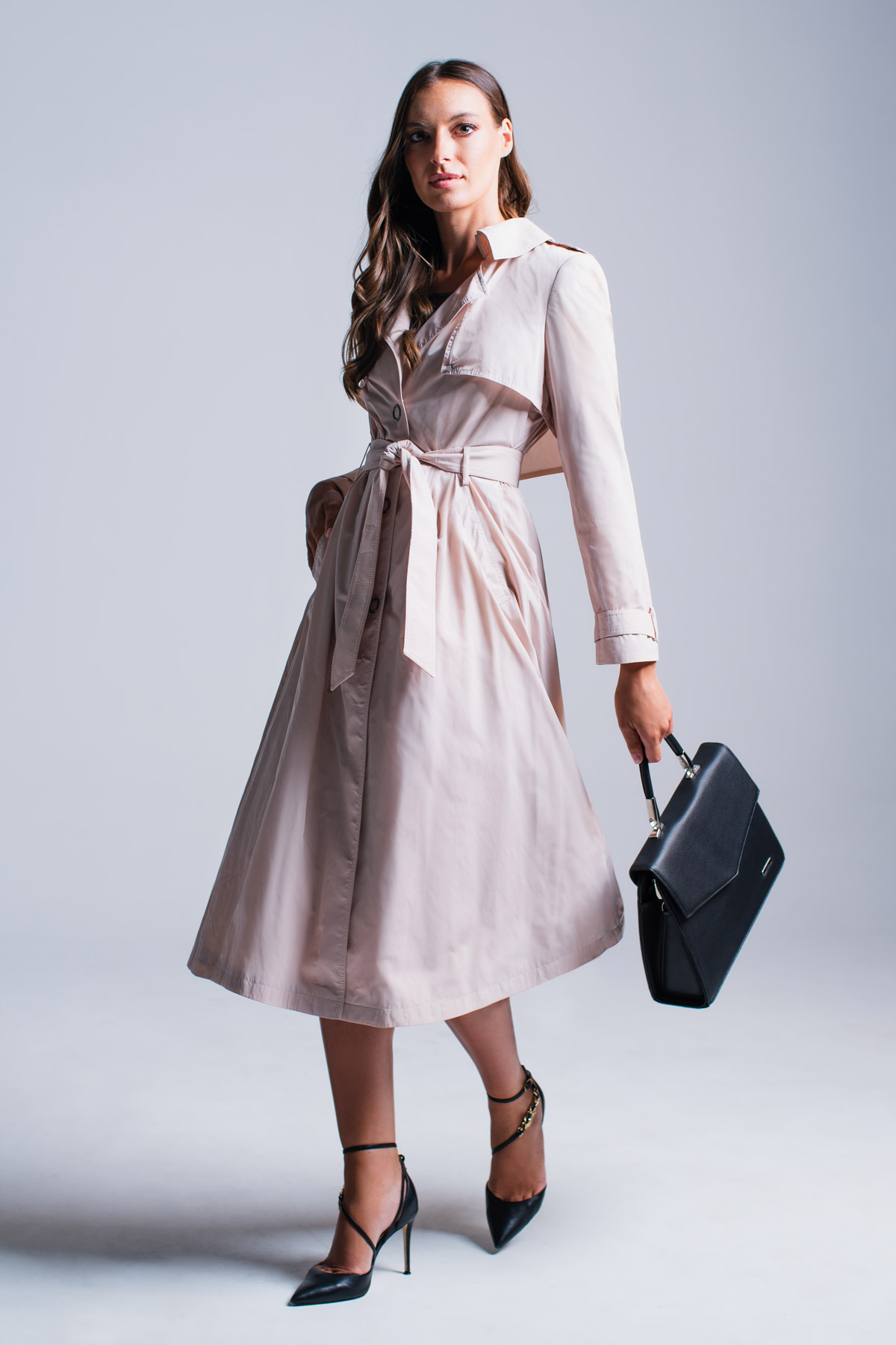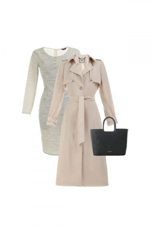 Nežni bež mantil srednje dužine jedinstvenog dizajna savršeno se slaže sa svim jesenjim...