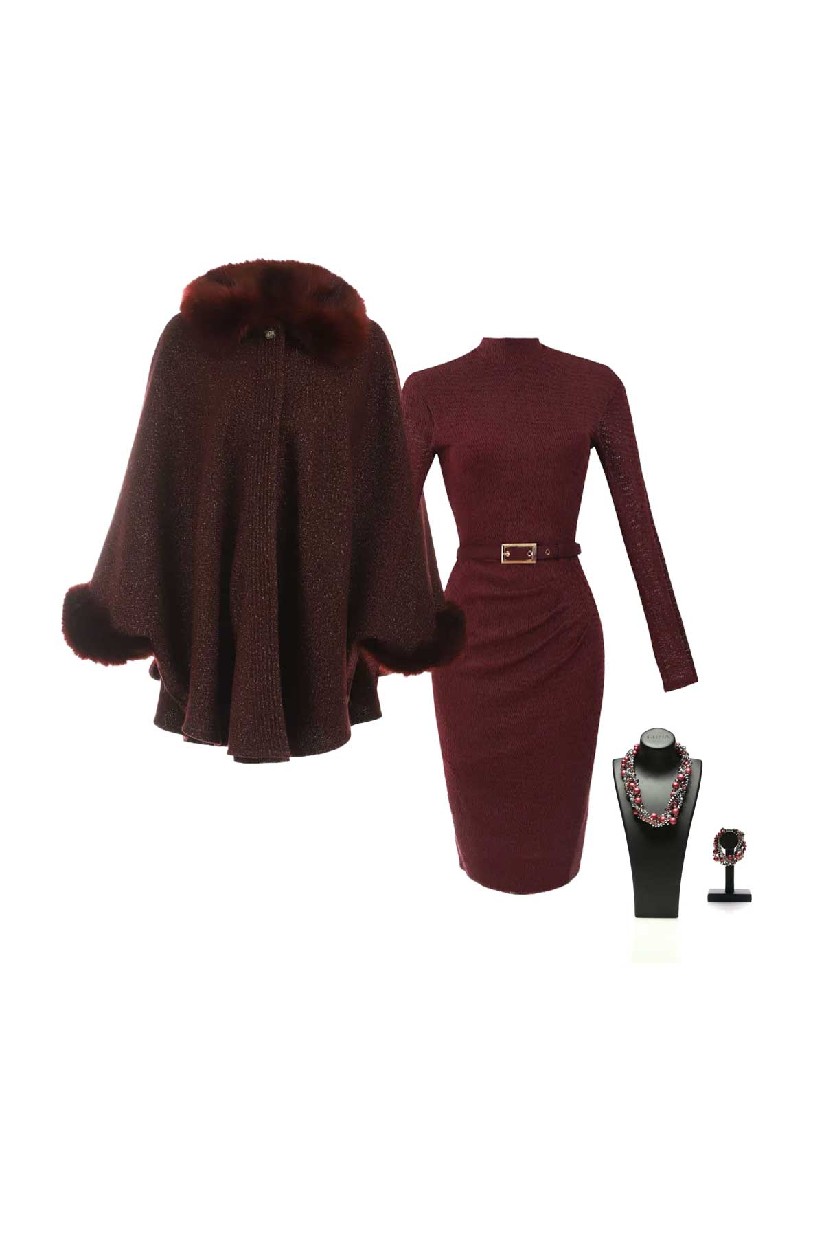 Elegantna pelerina u bordo nijansi protkana lame vlaknima idealna je za hladne dane.