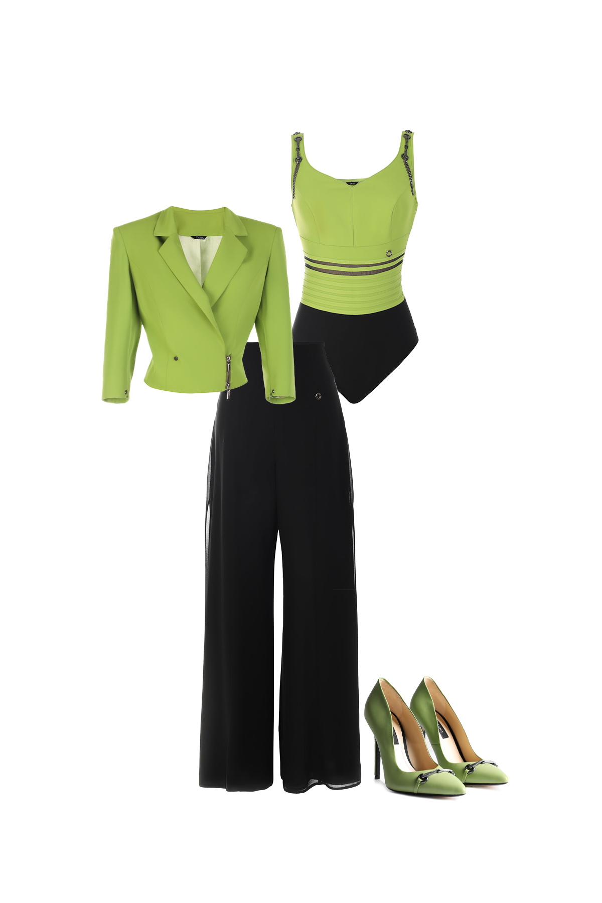 Zeleni sako dužine do bokova sa 3/4 rukavima, odlično se kombinuje sa modelima iz iste ...