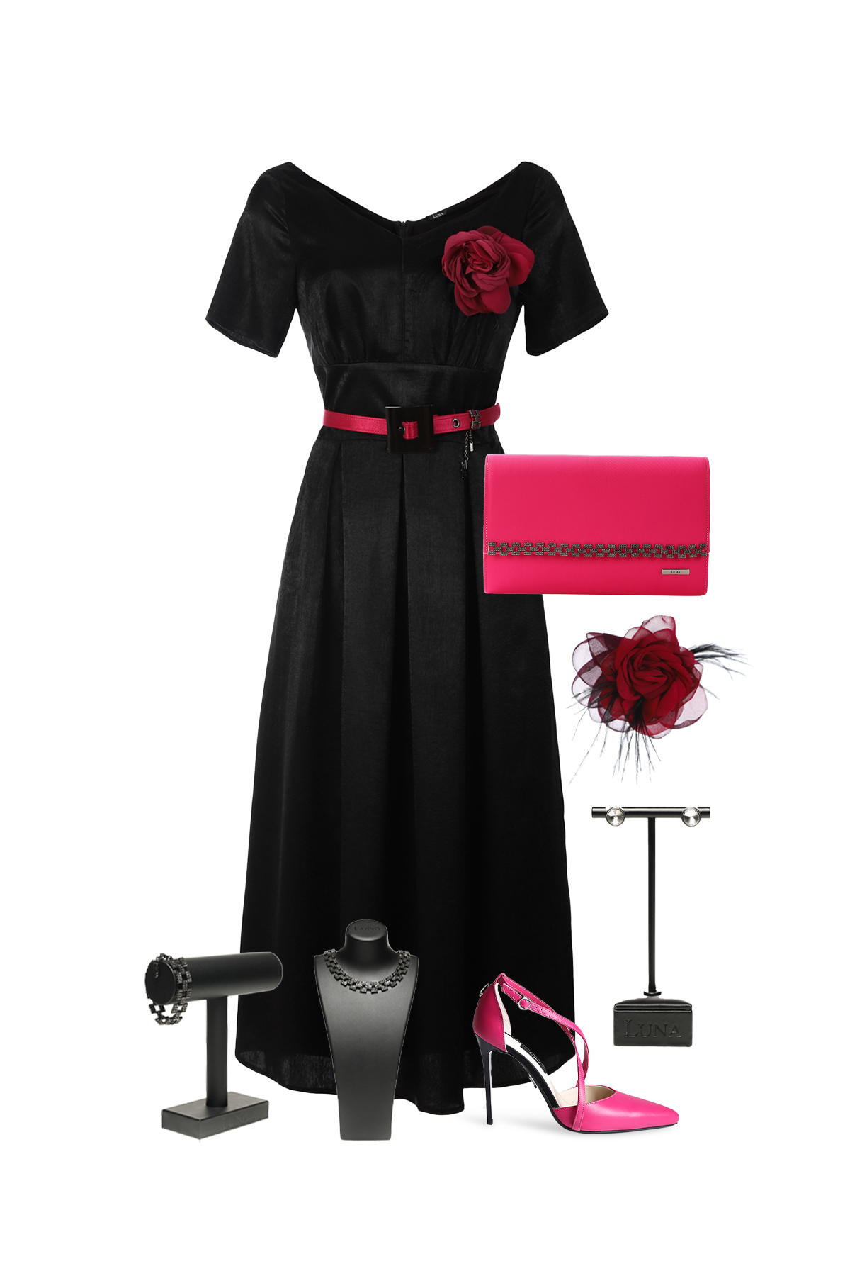 Midi haljina A kroja u crnoj boji savršeno se kombinuje sa cipelama i nakitom iz Luna a...