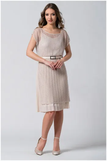Plisirana boho haljina sa elastičnim pojasom, oplemenjena je materijalom u formi mreže....