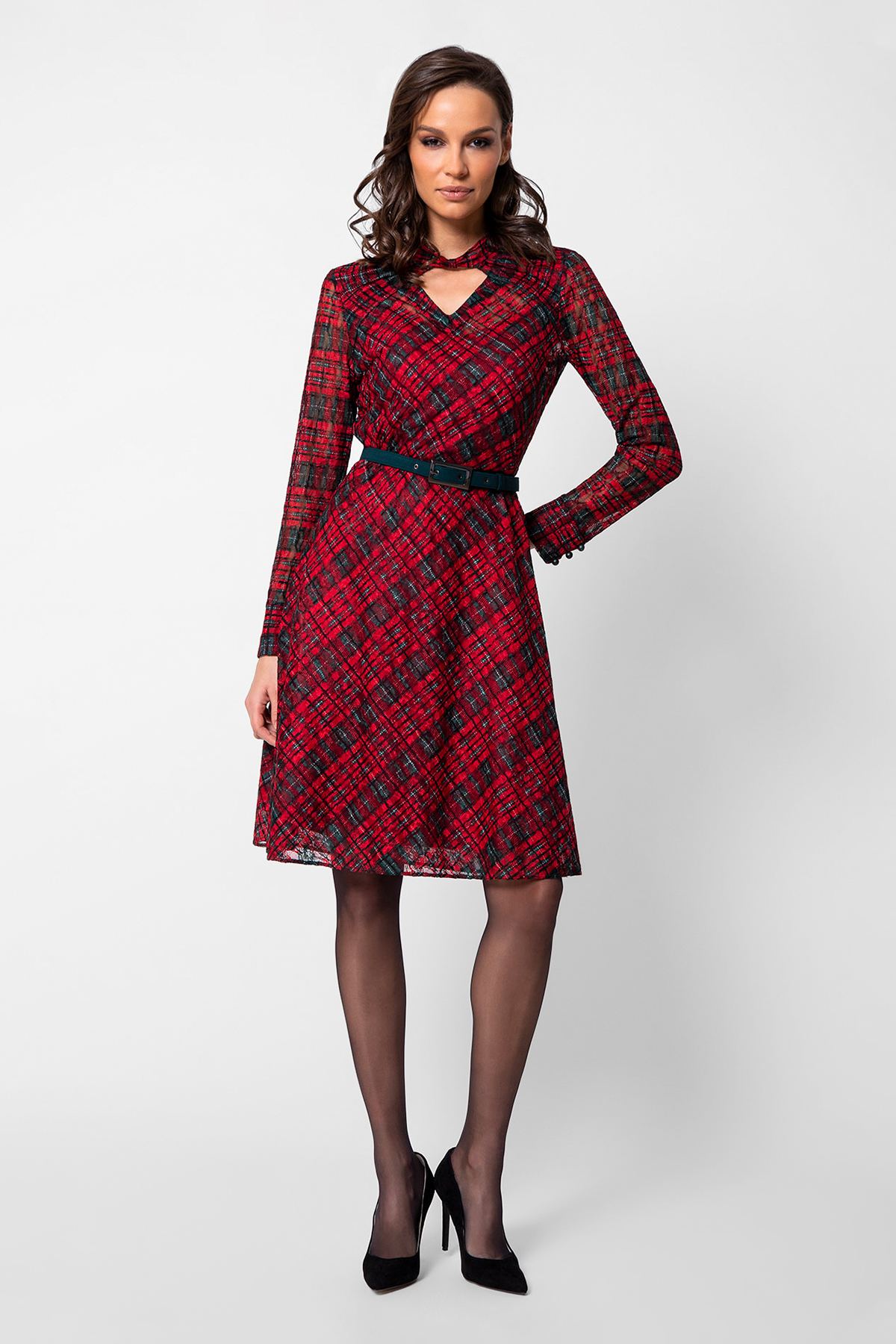 Kratka ženstvena haljina kariranog dezena odlično pristaje svim tipovima građe.