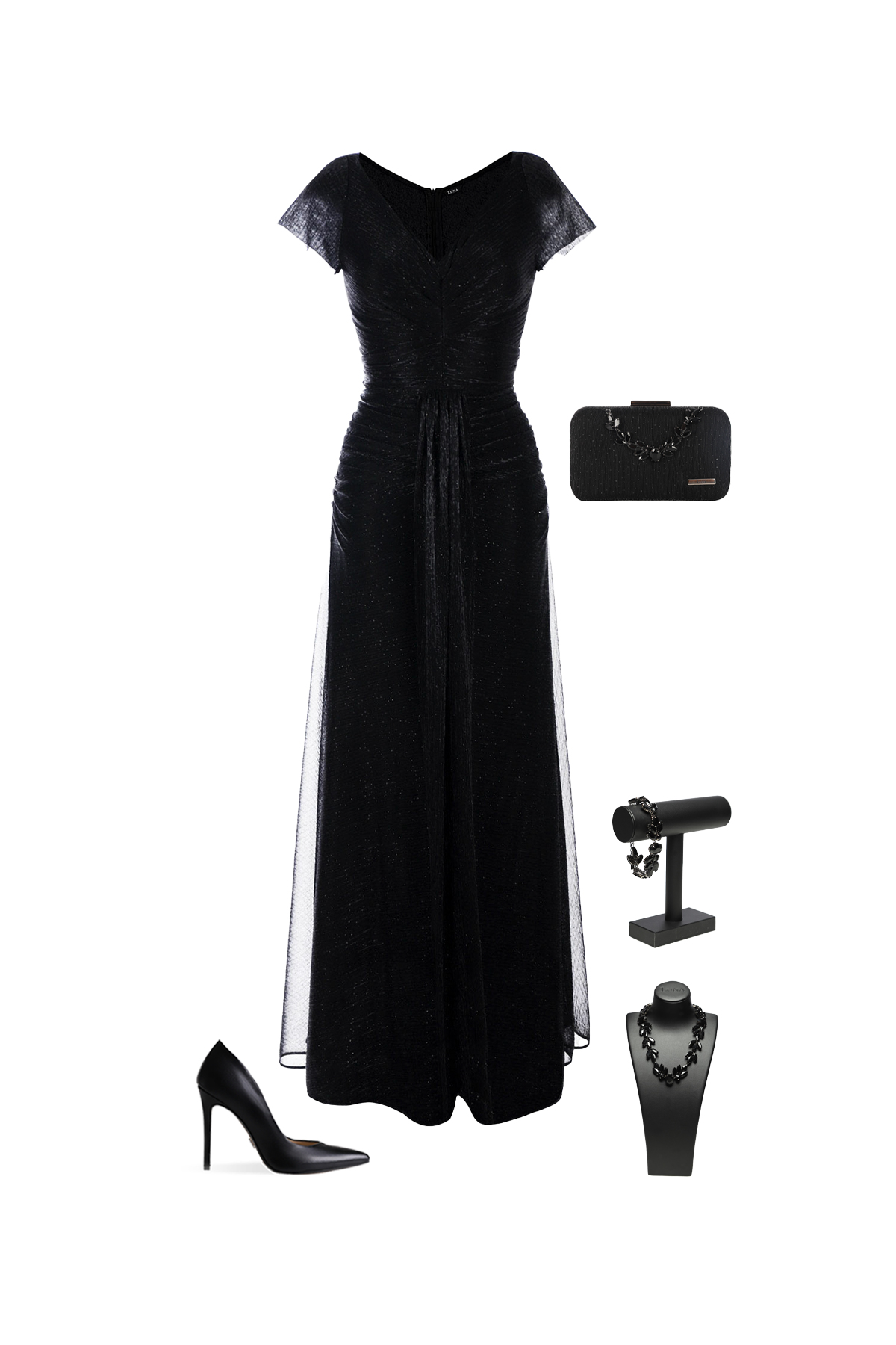 Elegantna duga haljina oplemenjena naborima u predelu biste i pojasa savršen je izbor z...