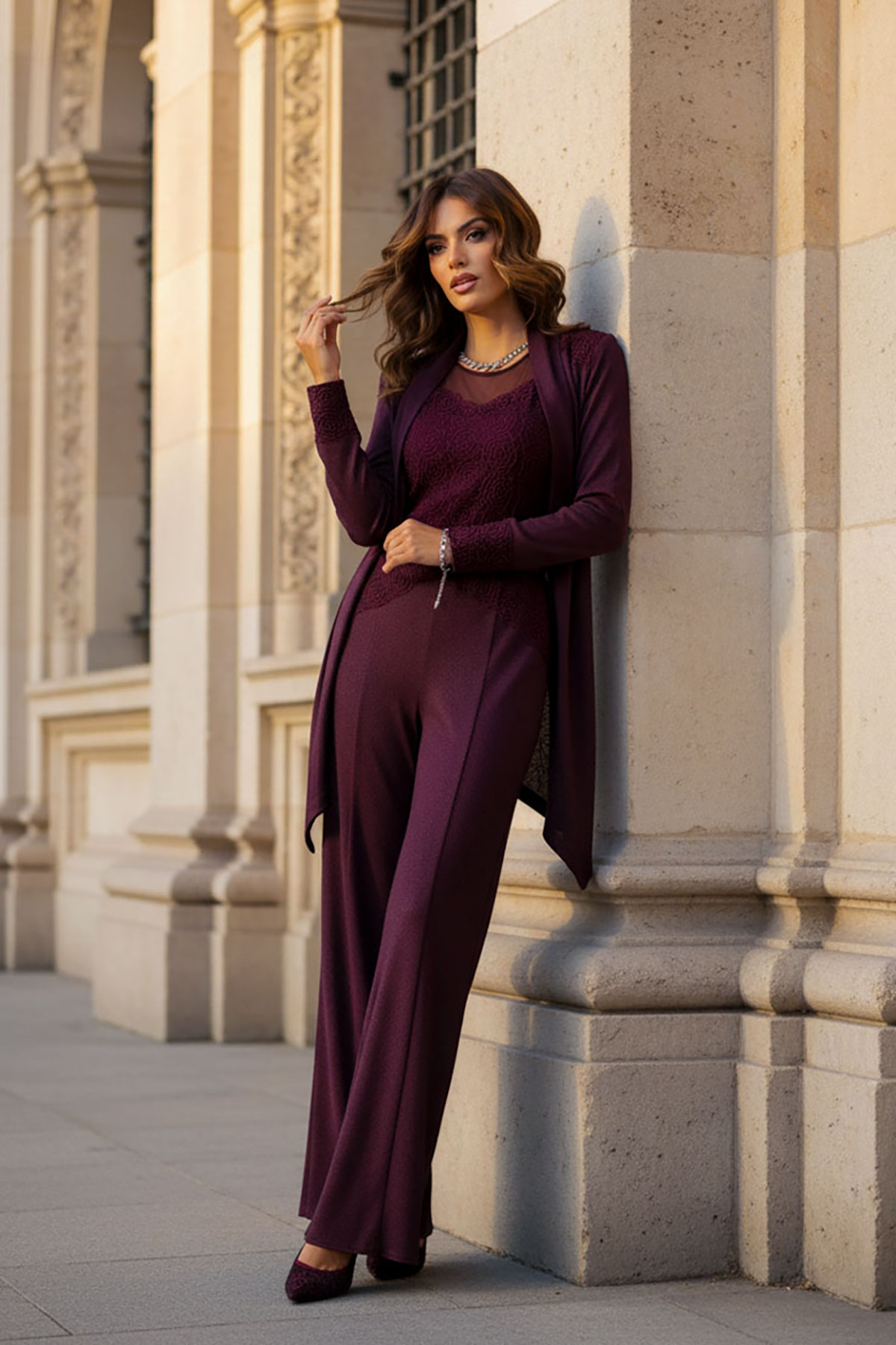 Elegantan bordo kombinezon oplemenjen čipkastim dezenom, idealan je za posebne prilike....
